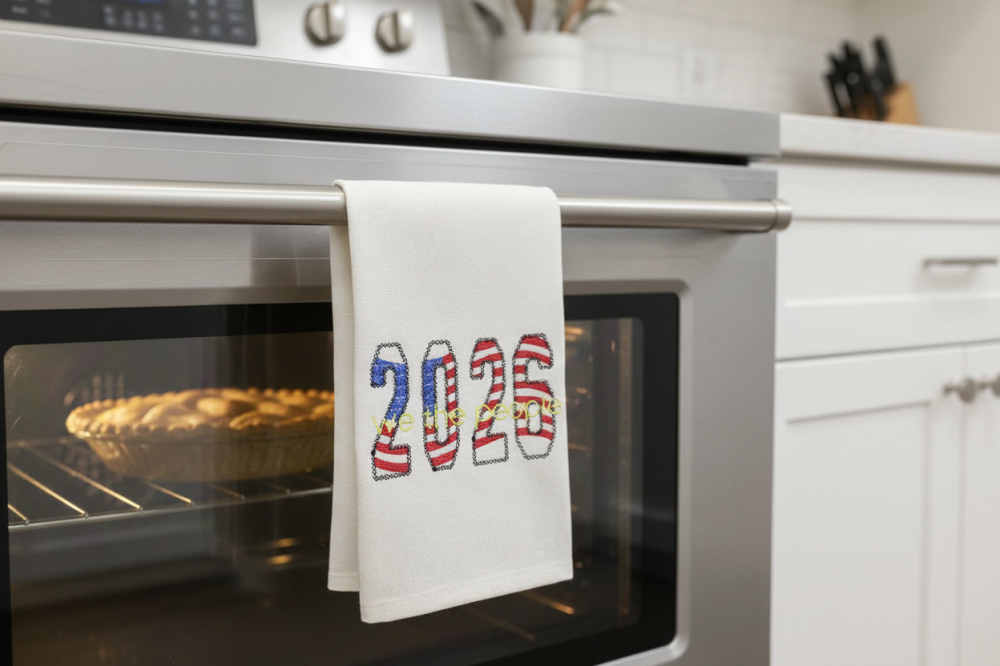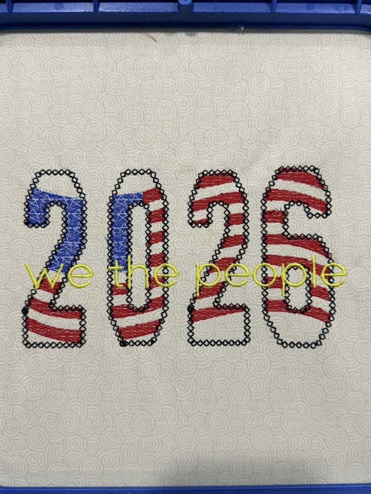 Sketchy 2026 We The People Embroidery Design! Inside the 2026 is a sketchy waving American Flag!