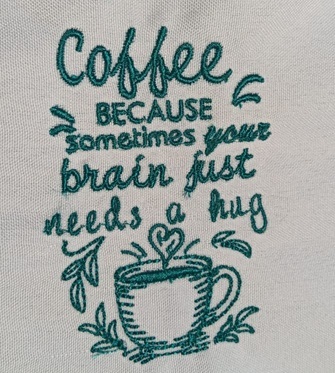 BRAIN NEEDS A HUG is a delightfully honest embroidery design for those mornings when thoughts are tangled and caffeine is non-negotiable. With playful lettering and cosy coffee vibes, it's perfect for tea towels, tray cloths, and coffee station linens that quietly admit the struggle is real. A stitched sigh of solidarity for tired brains everywhere coffee first, coping second.