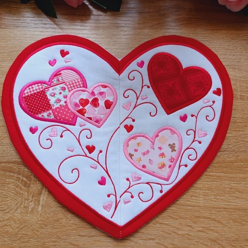 This fun hearts placemat makes the perfect addition to the hearts table runner. This placemat could also be used as a candle mat, large mug rug or even made into a heart cushion.