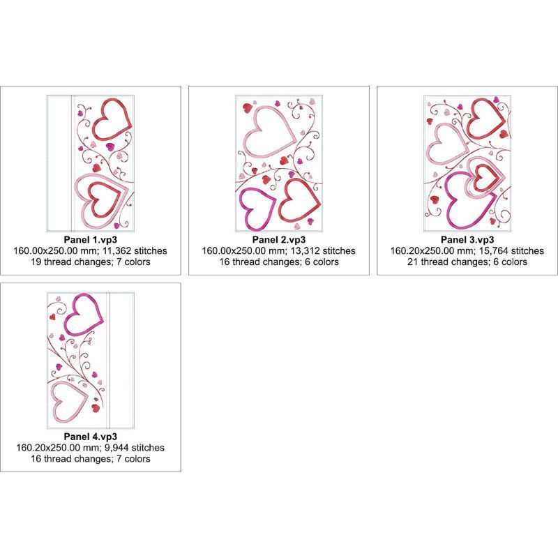 This fun and modern Hearts and vines table runner is super easy to make. Each panel is made in the hoop. The hearts are all done in applique. Sew and flip technique is used in the top and bottom panels.