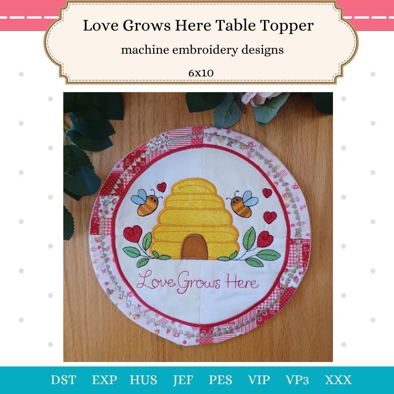 This fun table topper is made in 3 hoopings. The table topper uses the sew and flip technique as well as applique, making this a quick and easy project to make.