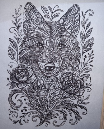 This line embroidery design features a watchful, intelligent presence that sits somewhere between woodland fox and loyal companion. Framed by florals and flowing linework, it feels calm, observant, and quietly alert the kind of character who notices everything without needing to react. Perfect for hoop art, cushions, tote bags, or statement pieces where a sense of awareness and quiet confidence belongs.