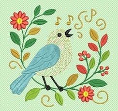 A lively little songbird with a lightly sketched body, singing among beautifully textured florals and playful notes. Adopt this performer alone or collect the whole flock.