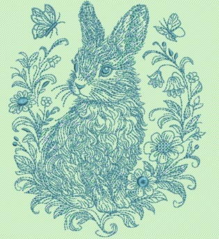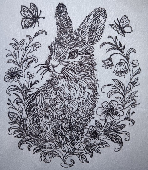 This bunny line embroidery design stars Thumper fluffy, wide-eyed, and absolutely convinced he heard something. Perched among flowers and fluttering butterflies, he brings big storybook energy and just a hint of mischief, like he's moments away from either hopping off or causing gentle chaos. Perfect for hoop art, cushions, tote bags, or nursery pieces that need charm, character, and a bunny with opinions.
