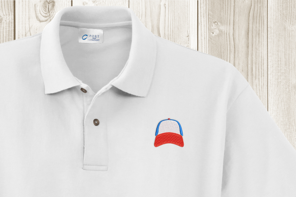 This mini embroidery design features a trucker hat where you can use different colors for the front, sides, and brim. You can use the colors for your favorite sports team or fandom.